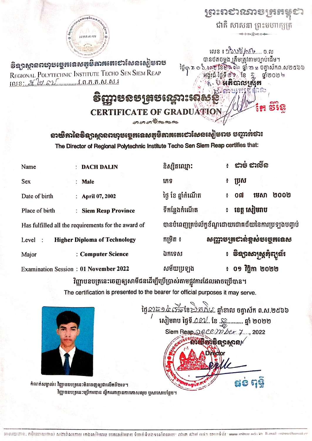 Issued by Techo Sen Angkor Thom High School