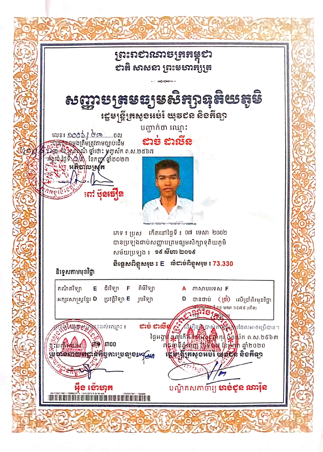 Issued by Techo Sen Angkor Thom High School